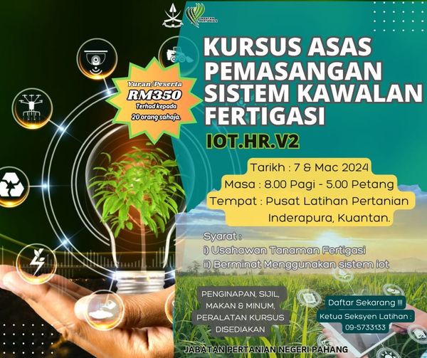 - Kursus Asas Pemasangan Sistem Fertigasi : ioT.HR.V2 – 7 & 8 Mac 2024