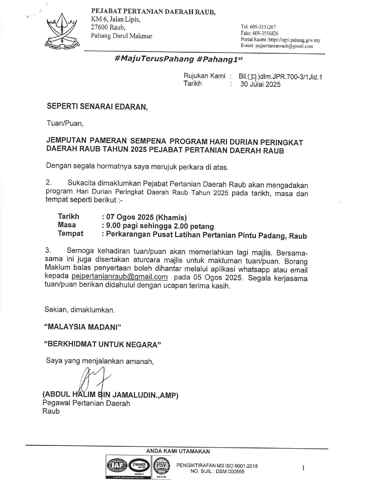 - Program Kesedaran Pengurusan Pertanian Di Tanah Gambut Sedia Ada Zon Timur – 14 – 16 Julai 2025