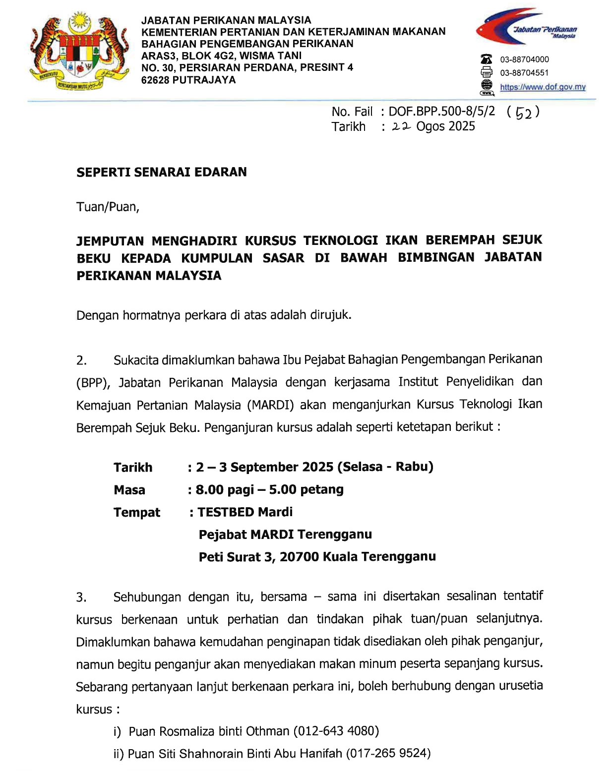 - Hands-On Training (HOT) : Teknologi Pemprosesan Ikan Berempah Sejuk Beku – 2 – 3 Sept 2025