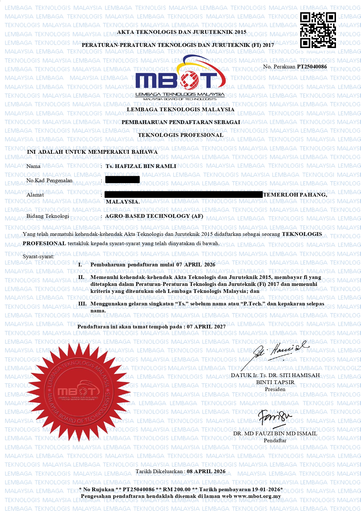 55. Sijil Pengiktirafan Sebagai mySOILDOCTOR Negeri Pahang 2025