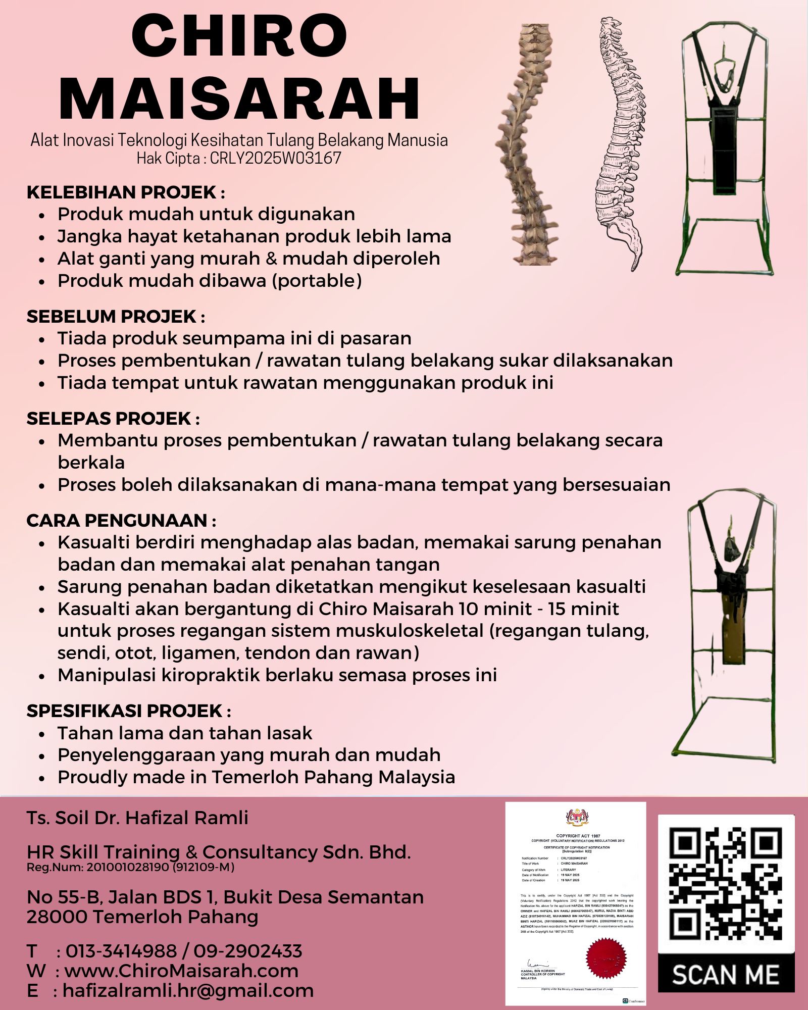 -Chiro Maisarah : Alat Inovasi Teknologi Kesihatan Tulang Belakang Manusia