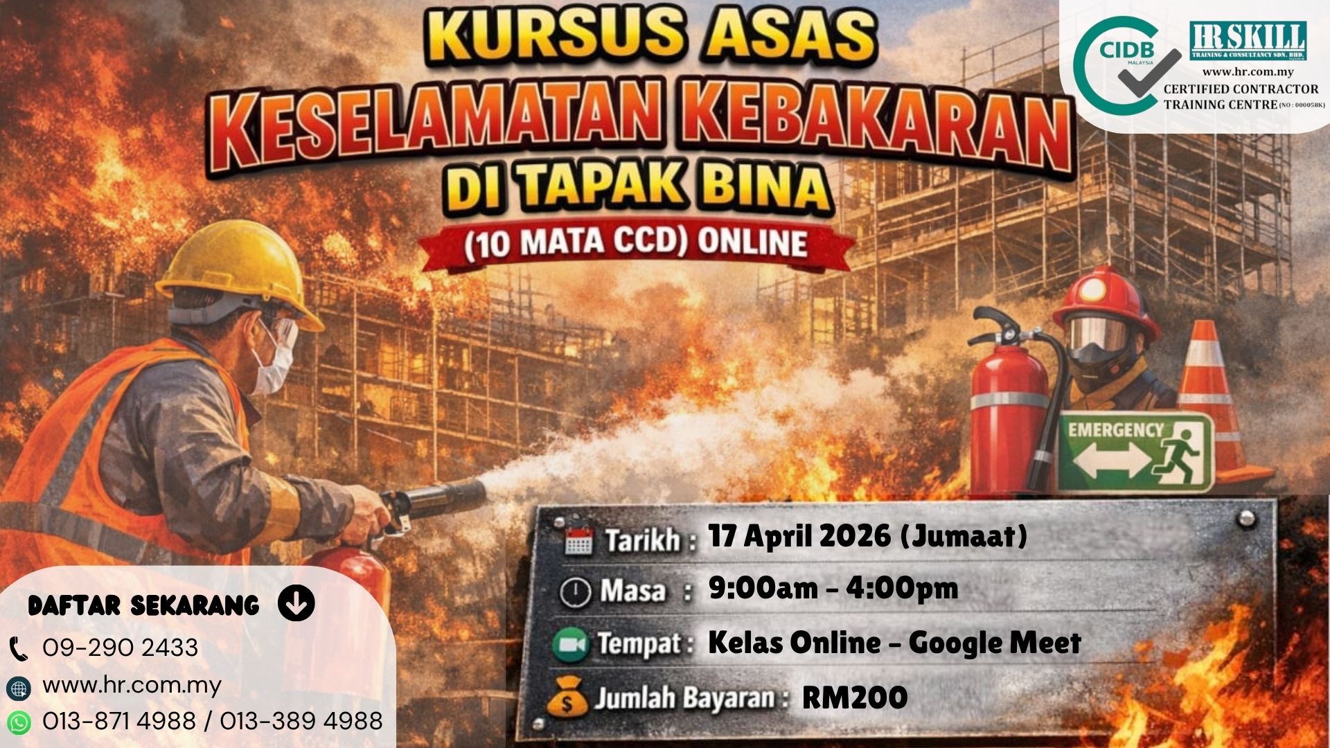 Kursus Asas Keselamatan Kebakaran Di Tapak Bina (10 Mata CCD) Online :