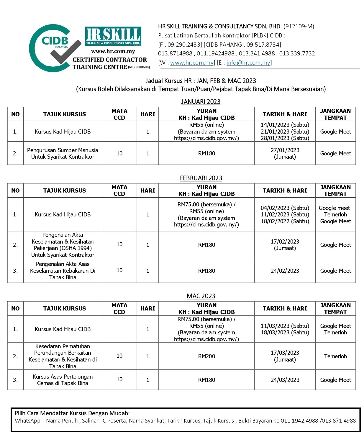 Pusat Latihan Bertauliah Kontraktor [PLBK] Lembaga Pembangunan Industri Pembinaan Malaysia [CIDB]