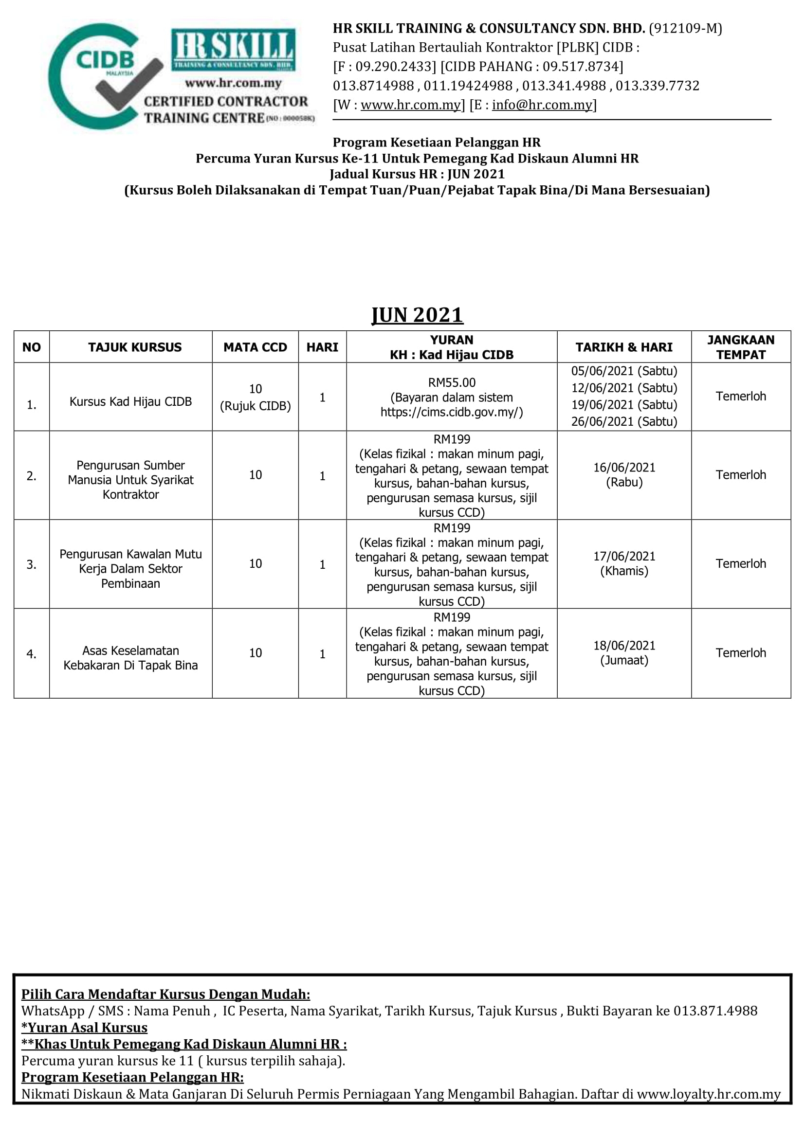 Pendaftaran Kursus / Jadual terkini